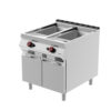 Aus Edelstahl mit Scotch Brite-Finish und versenkten Nähten, 20/10 starke geformte Platten mit herausnehmbaren Behältern und abgerundeten Ecken für optimale Reinigung. Erhältlich in Versionen mit offenem Fach oder mit Flügeltür. Vertikale 5 Kw- und 8 Kw-Brenner mit Einzel- und Doppelkrone.
