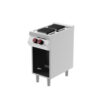 Aus Edelstahl mit Scotch Brite-Finish und versenkten Nähten, 20/10 starke geformte Platten mit herausnehmbaren Behältern und abgerundeten Ecken für optimale Reinigung. Erhältlich in Versionen mit offenem Fach oder mit Flügeltür. Vertikale 5 Kw- und 8 Kw-Brenner mit Einzel- und Doppelkrone.