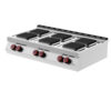 Aus Edelstahl mit Scotch Brite-Finish und versenkten Nähten, 20/10 starke geformte Platten mit herausnehmbaren Behältern und abgerundeten Ecken für optimale Reinigung. Erhältlich in Versionen mit offenem Fach oder mit Flügeltür. Vertikale 5 Kw- und 8 Kw-Brenner mit Einzel- und Doppelkrone.
