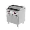 Aus Edelstahl mit Scotch Brite-Finish und versenkten Nähten, 20/10 starke geformte Platten mit herausnehmbaren Behältern und abgerundeten Ecken für optimale Reinigung. Erhältlich in Versionen mit offenem Fach oder mit Flügeltür. Vertikale 5 Kw- und 8 Kw-Brenner mit Einzel- und Doppelkrone.