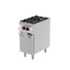 Aus Edelstahl mit Scotch Brite-Finish und versenkten Nähten, 20/10 starke geformte Platten mit herausnehmbaren Behältern und abgerundeten Ecken für optimale Reinigung. Erhältlich in Versionen mit offenem Fach oder mit Flügeltür. Vertikale 5 Kw- und 8 Kw-Brenner mit Einzel- und Doppelkrone.