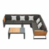 Die New Yorker Lounge ist bekannt für ihren Komfort und ihr modernes Design. Die Lounge-Garnitur hat ein stabiles anthrazitfarbenes Aluminiumgestell, robuste Teak-Elemente in den Armlehnen und herrlich dicke Kissen aus Olefin.Olefin ist ein sehr starkes Material und ist für seinen Komfort bekannt. Schmutz und UV-Strahlung haben keinen Einfluss auf die Qualität, ausserdem sind die Kissen strapazierfähig und fühlen sich herrlich weich an.
