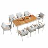 Lassen Sie Ihre Gäste die Nofi-Essgarnitur mit bis zu 6 Sitzplätzen geniessen.Die Essgarnitur ist mit einem stabilen anthrazitfarbenen Aluminiumrahmen, Teak-Elementen und uv-beständigem Seil ausgestattet. Dieses 7-teilige Esszimmer-Set besteht aus: 6 Terrassenstühle (mit Armlehne) und ein Terrassentisch (220 x 90 cm).Abmessungen: