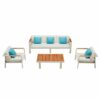 Lassen Sie die Gäste die Sonne auf dem Nofi-Loungeset geniessen. Das Lounge-Set hat einen gemütlichen und einzigartigen Look.Das Lounge-Set besteht aus einem weissen Aluminiumrahmen, Teakholz-Elementen und grossen Kissen aus Olefin zum Entspannen. Olefin ist ein sehr starkes Material und ist für seinen Komfort bekannt. Schmutz und UV-Strahlung haben keinen Einfluss auf die Qualität, ausserdem sind die Kissen strapazierfähig und fühlen sich herrlich weich an.