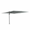 Der frei hängende Tropez Floating Parasol ist ein Sonnenschirm mit vielen Vorteilen. Der Sonnenschirm kann sowohl nach hinten als auch zur Seite gekippt werden und dreht sich zudem um 360 Grad um seine Achse. Trotz seiner Grässe kann der Sonnenschirm in jede gewünschte Position gebracht werden.Der Rahmen ist vollständig aus Aluminium gefertigt und bietet eine hohe Festigkeit. Das Tuch besteht aus einem 220-Gramm-Polyestergewebe mit einer PA-Beschichtung. Dadurch wird das Tuch wasser- und schmutzabweisend und auch vor Verfärbungen geschützt. Durch einen Drehmechanismus lässt sich der Sonnenschirm leicht äffnen und schliessen.